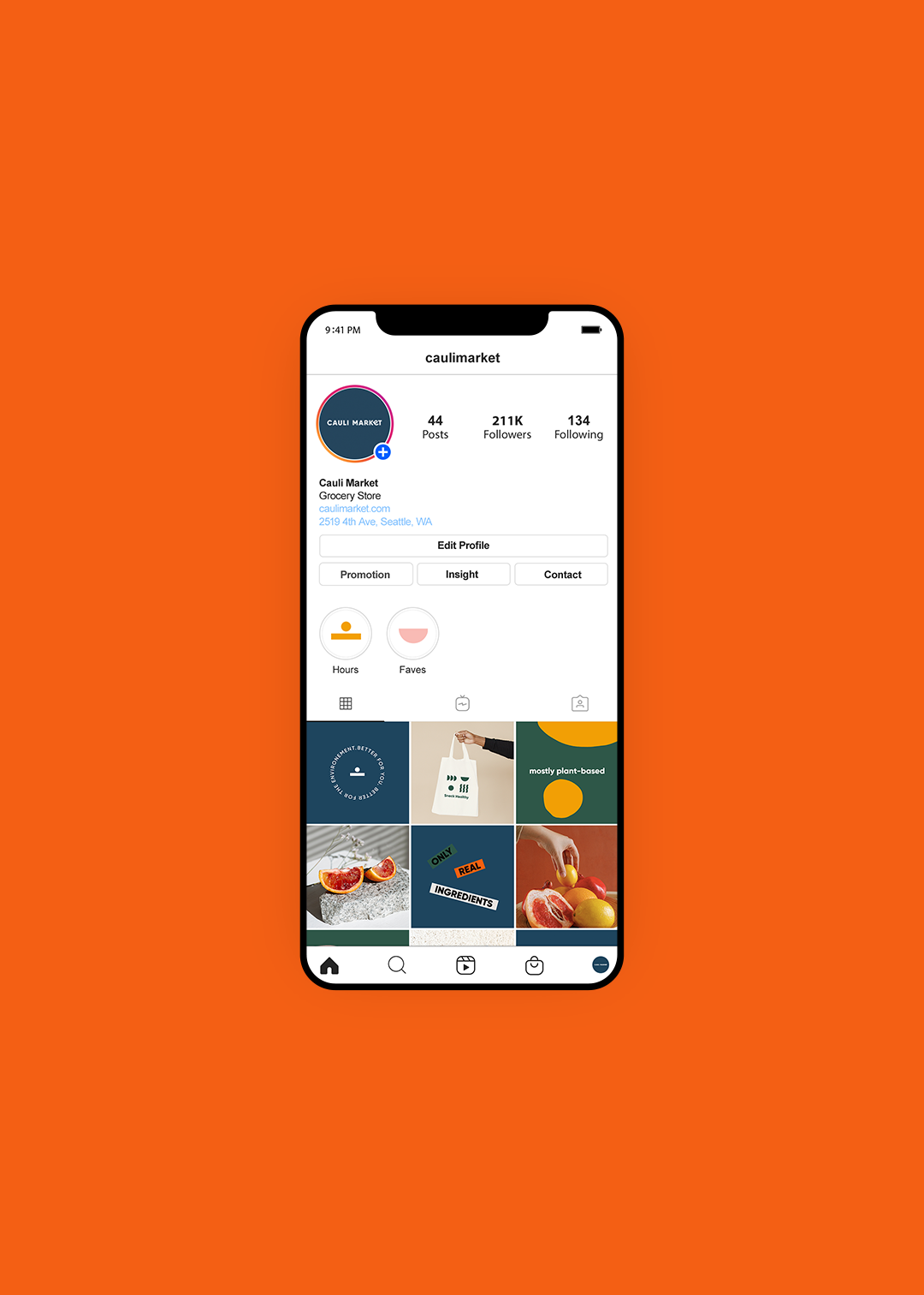 Cauli Market_Cauli Market is a woman-owned local shop offering healthy snacks and pantry staples, including tons of vegan finds, all curated with care. After years of dreaming and planning, founder Jamie was ready to bring her vision to life with a brick-and-mortar launch in Seattle, supported by a growing online presence. She needed a brand that felt fresh, playful, and purpose-driven, something that would stand out on the street and on social. A little bold, a little wholesome, and a lot of personality.